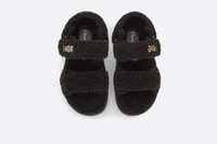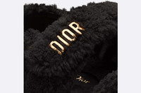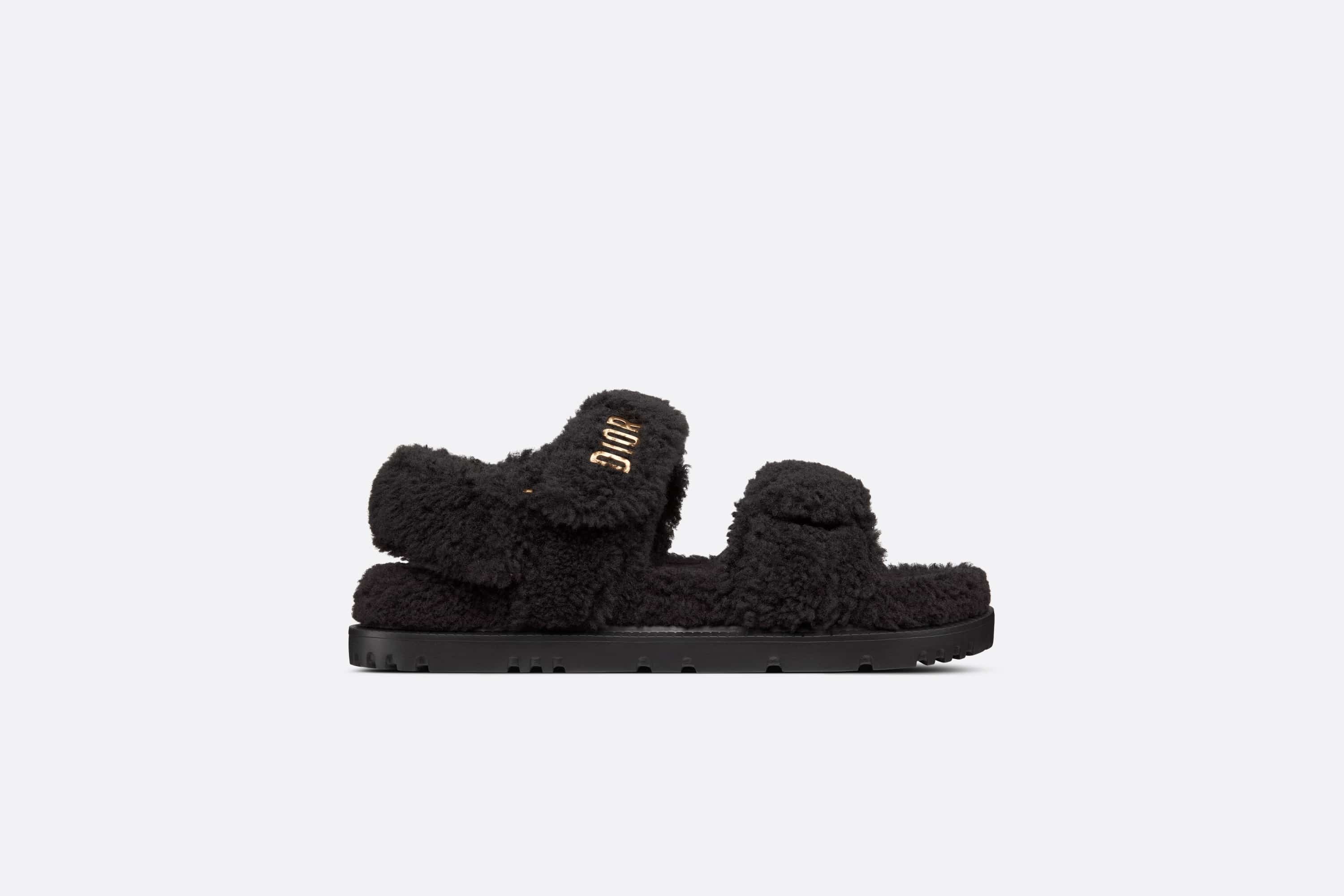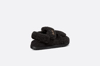 The black shearling DiorAct sandal has a modern silhouette. The style features an ultra comfortable anatomically shaped shearling sole, and scratch bands enhanced by a gold-finish metal 'DIOR' signature on the upper band complete the design. The sandal will lend a contemporary touch to any look. - Gold-finish metal 'DIOR' signature - Two adjustable scratch straps - Anatomically shaped shearling insole - Notched EVA sole with star, Christian Dior's lucky symbol - Made in Italy Size & Fit - The style fits true to size: we recommend ordering your normal shoe size - For those with wider feet, we recommend ordering a half-size larger than your normal size - For more information, please review the size guide