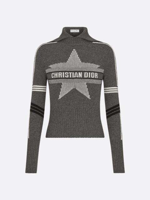 Part of the DiorAlps capsule, the mock neck sweater reimagines the winter sports universe with the House's couture codes. Crafted in a navy blue virgin wool and cashmere knit, it features a three-tone Dior Star motif, accented by the Christian Dior signature. Fitted at the waist, the sweater can be coordinated with other DiorAlps creations to complete the look. - Christian Dior signature - Ribbed collar, cuffs and hem - 70% virgin wool, 30% cashmere (5 gauge)* - Made in Italy - Treat with extra care and gently dry clean Size & Fit - Slightly cropped fit - Stretch ribbing around waist - Long sleeves - Using our personalized tool will provide you with the best size recommendation - For more information, please review the size guide