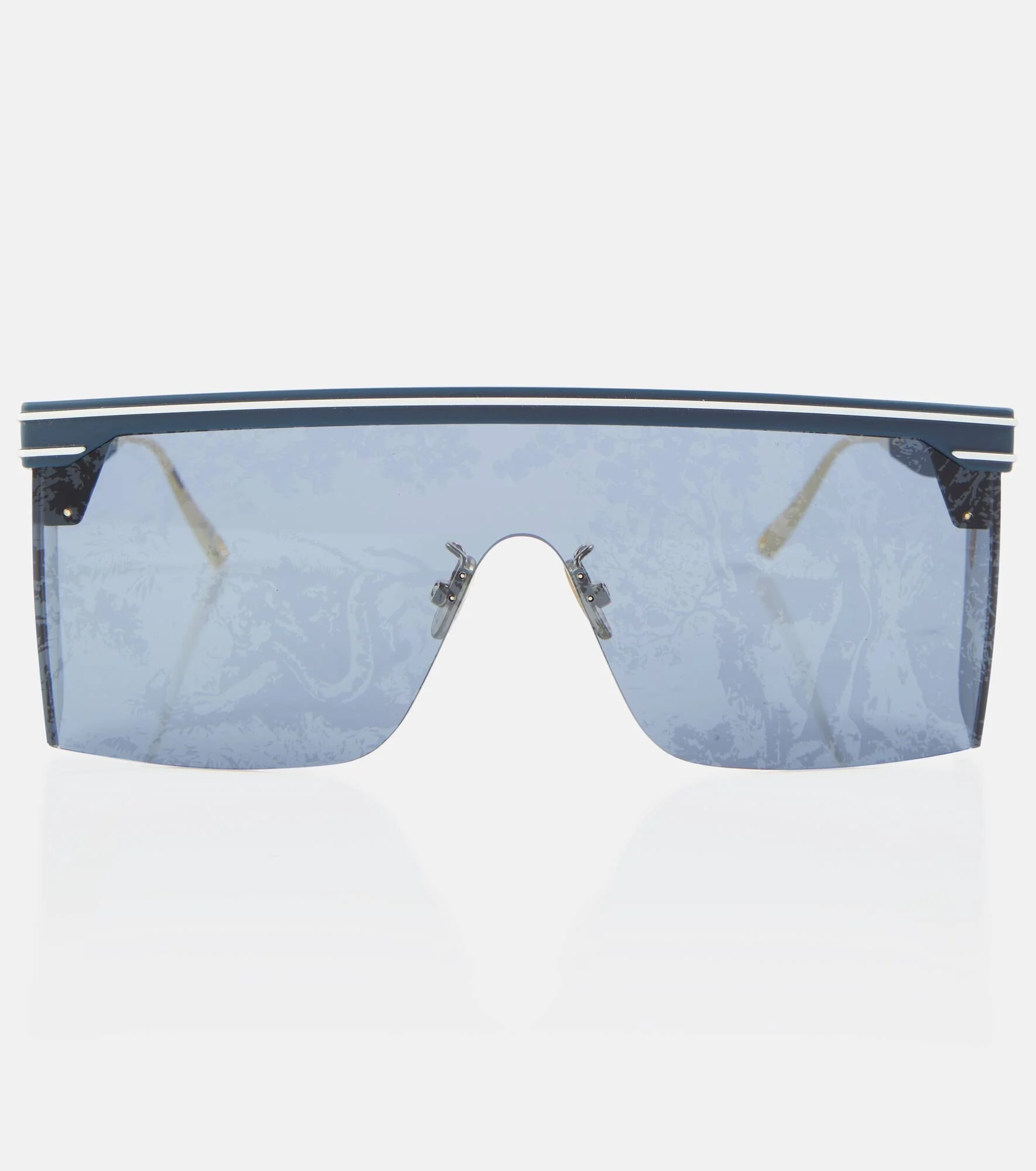 These DiorClub M1U sunglasses are a chic take on summertime logomania from Dior Eyewear. The acetate design features branded blue lenses in a visor silhouette, and the label's full moniker along the navy blue arms. Product Details - Frame color: blue, white - Frame material: acetate, metal - Lens color: dark blue - comes with cleaning cloth - comes in a logo-embossed case - comes with a presentation box - The color of the case may vary - Lens filter category 3 - Made in Italy - Item number: P00680136 Size & Fit - Lens width: 137mm-5.4" - Earpiece length: 130mm-5.1"