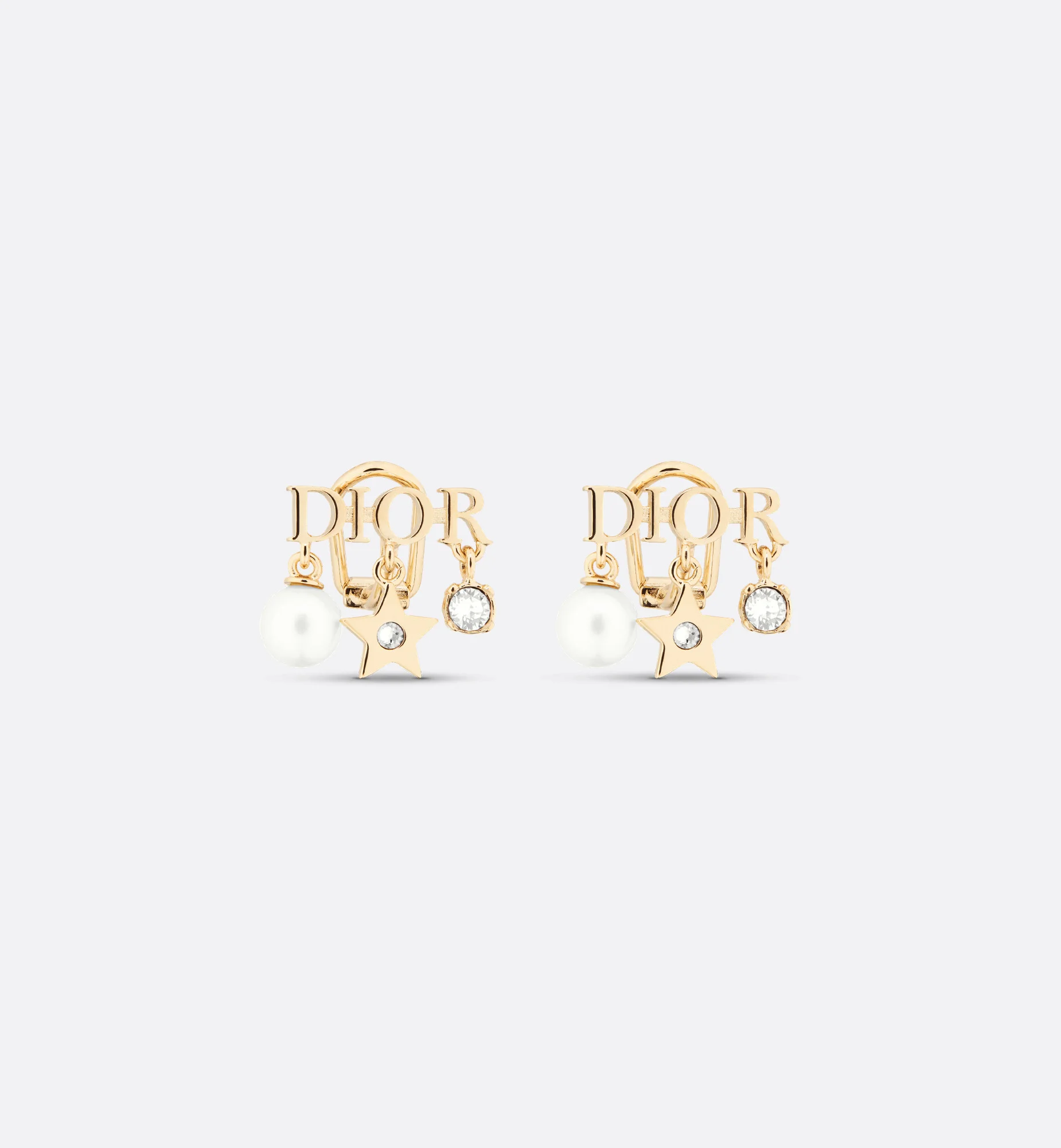 The Dio(r)evolution clip-on earrings are distinguished by their modern and elegant look. The gold-finish metal 'DIOR' signature is embellished with hanging charms: a white resin pearl, a star adorned with a white crystal and a faceted white crystal. The clip-on earrings can be coordinated with other Dio(r)evolution creations. - White resin pearls - White crystals - 'DIOR' signature - Star charm - Gold-finish metal - Clip clasp - Sold as a pair - Made in Germany Size & Fit - Length: 1.5 cm / 0.5 inch