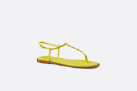 New for Fall 2024 and part of the Dioriviera capsule, the C'est Dior thong sandal is a modern and elegant design. Crafted in lemon yellow calfskin, the thin straps are highlighted by gold-finish metal C and D letters, inspired by House archives. Completed by a padded leather insole offering ultimate comfort, the jeweled sandal will lend a refined touch to any look and can be coordinated with other Dioriviera creations. - Gold-finish metal C and D initials on the front - Adjustable buckled ankle strap - Padded calfskin insole - Leather sole with star, Christian Dior's lucky symbol - Made in Italy Size & Fit - The style fits large, we recommend ordering a half size smaller than your normal size - For those with wider feet, we recommend ordering your normal size - Weight: 160 g / 5.5 ounces - Using our personalized tool will provide you with the best size recommendation - For more information, please review the size guide