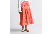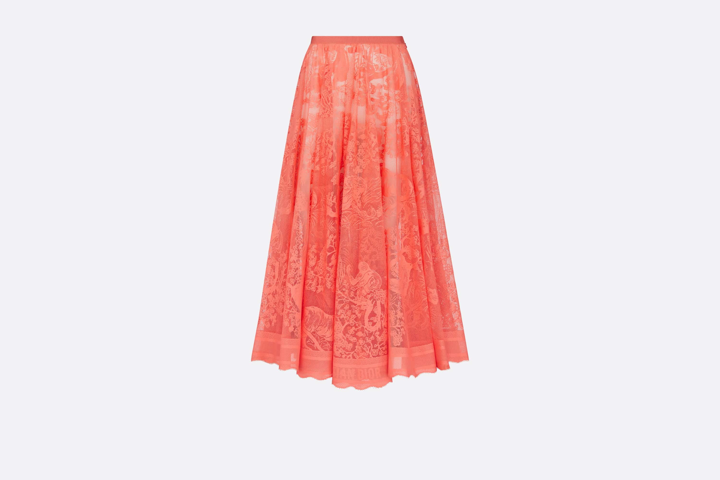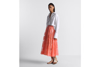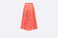 Part of the Dioriviera capsule, the mid-length skirt revisits House codes of modern elegance. Crafted in coral technical cotton lace, it showcases iconic Toile de Jouy animals and features a flared cut enhanced by pleats on the bottom and a thin waistband. An iconic Dior silhouette, the mid-length skirt will pair with other Dioriviera creations to complete the look. - Thin waistband - Tonal Christian Dior signature band on the bottom - Zip and hook closure - Removable tonal silk lining - 68% cotton, 32% polyamide - Made in Italy Size & Fit - Flared cut - Mid-length - The model measures 178 cm / 70 inches and the item shown is in size 36 (FR) - Using our personalized tool will provide you with the best size recommendation - For more information, please review the size guide