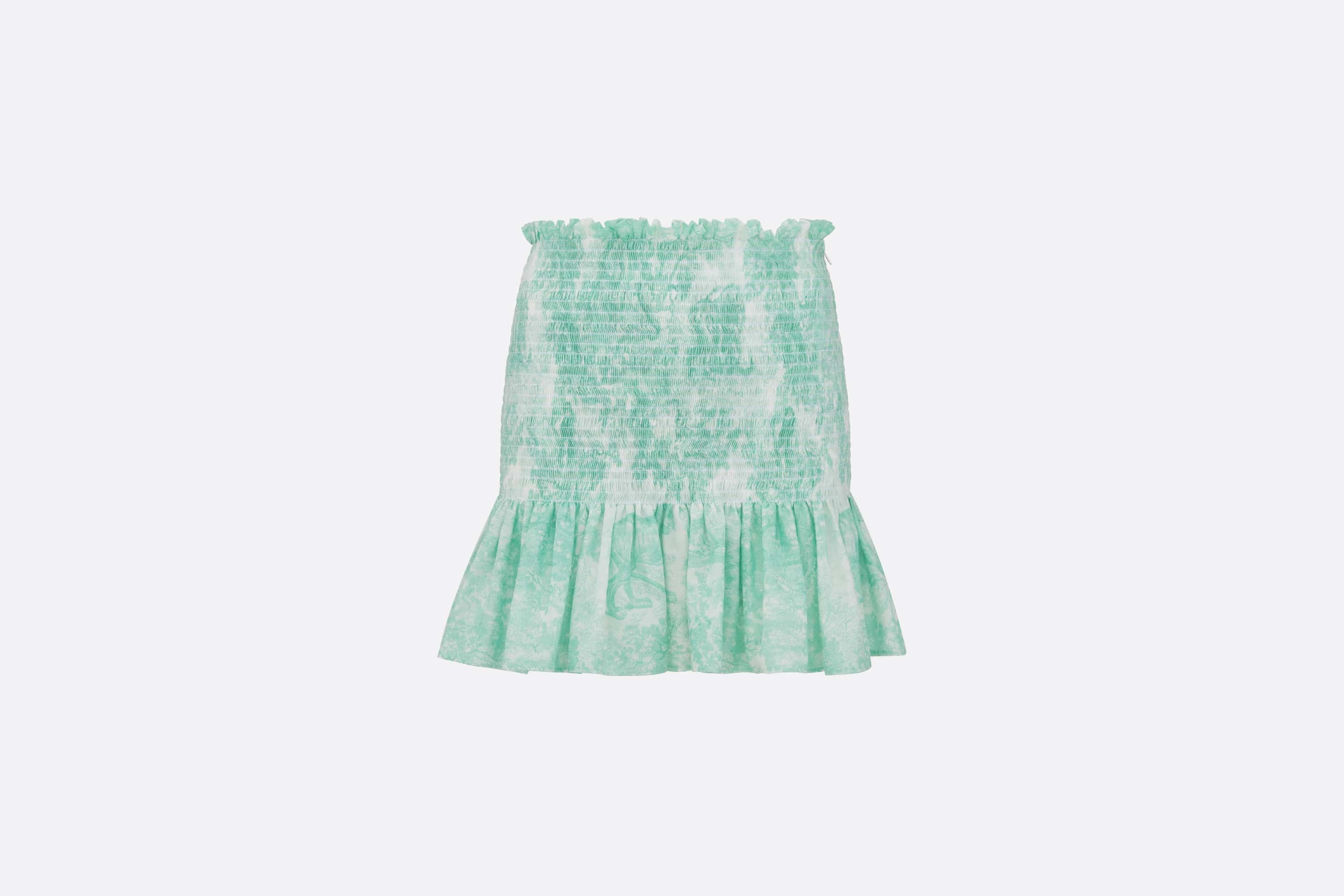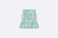 Part of the Dioriviera collection, the miniskirt is an elegant and retro style presenting the Toile de Jouy Sauvage motif, a new take on the hallmark House pattern. Crafted in white and aquamarina cotton muslin, it features a flared silhouette enhanced by smocking at the waist and ruffles at the bottom. The miniskirt will pair with other Dioriviera creations to complete the look. - Stretch waistband - Smocked and ruffled style - Tonal lining - 100% cotton - Made in Italy Size & Fit - Fit-and-flare silhouette - Short silhouette - Using our personalized tool will provide you with the best size recommendation - For more information, please review the size guide