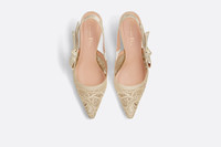 Part of the Dior Or capsule collection, the J'Adior slingback pump in transparent mesh is adorned with a gold-tone D-Lace Macramé motif enhanced by metallic thread, inspired by lace and honoring House savoir-faire. The J'Adior signature embroidered ribbon, bow and 6.5 cm (2.5) comma heel complete the refined style, which can be paired with creations from the Dior Or collection. - J'Adior embroidered cotton ribbon - Flat bow - Lace low-cut upper - Leather sole with star, Christian Dior's lucky symbol - Made in Italy Size & Fit - Comma heel: 6.5 cm / 2.5 inches - The style fits true to size: we recommend ordering your normal shoe size - For those with wider feet, we recommend ordering a half-size larger than your normal size - For more information, please review the size guide