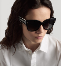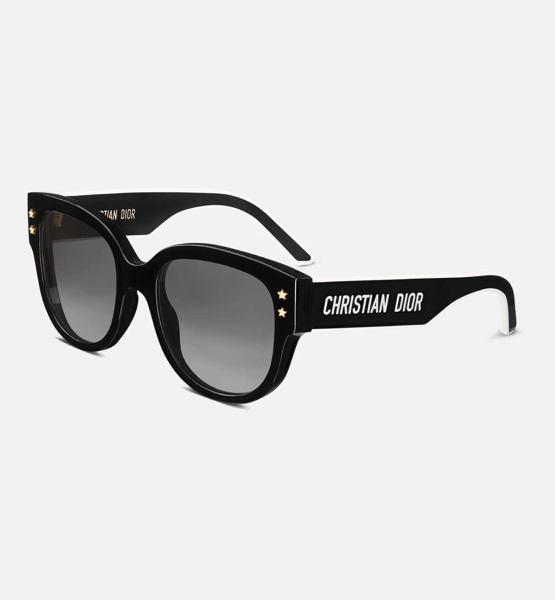 The DiorPacific B2I sunglasses are a modern butterfly design. The black acetate frame is adorned with gold-finish star details on the front, while the acetate temples present a black and white double-layer effect showcasing the Christian Dior signature. Completed by gradient gray lenses, the new essential style will lend a contemporary touch to any look. - Black acetate frame front - Gradient gray lenses - Black and white acetate temples with a double-layer effect and Christian Dior signature - Gold-tone Christian Dior signature on right temple interior - 100% UVA/UVB protection - Filter category: 3 - Suitable for prescription - Made in Italy Size & Fit - Lenses: 54 mm / 2 inches, Bridge: 20 mm / 1 inch, Temples: 140 mm / 5.5 inches
