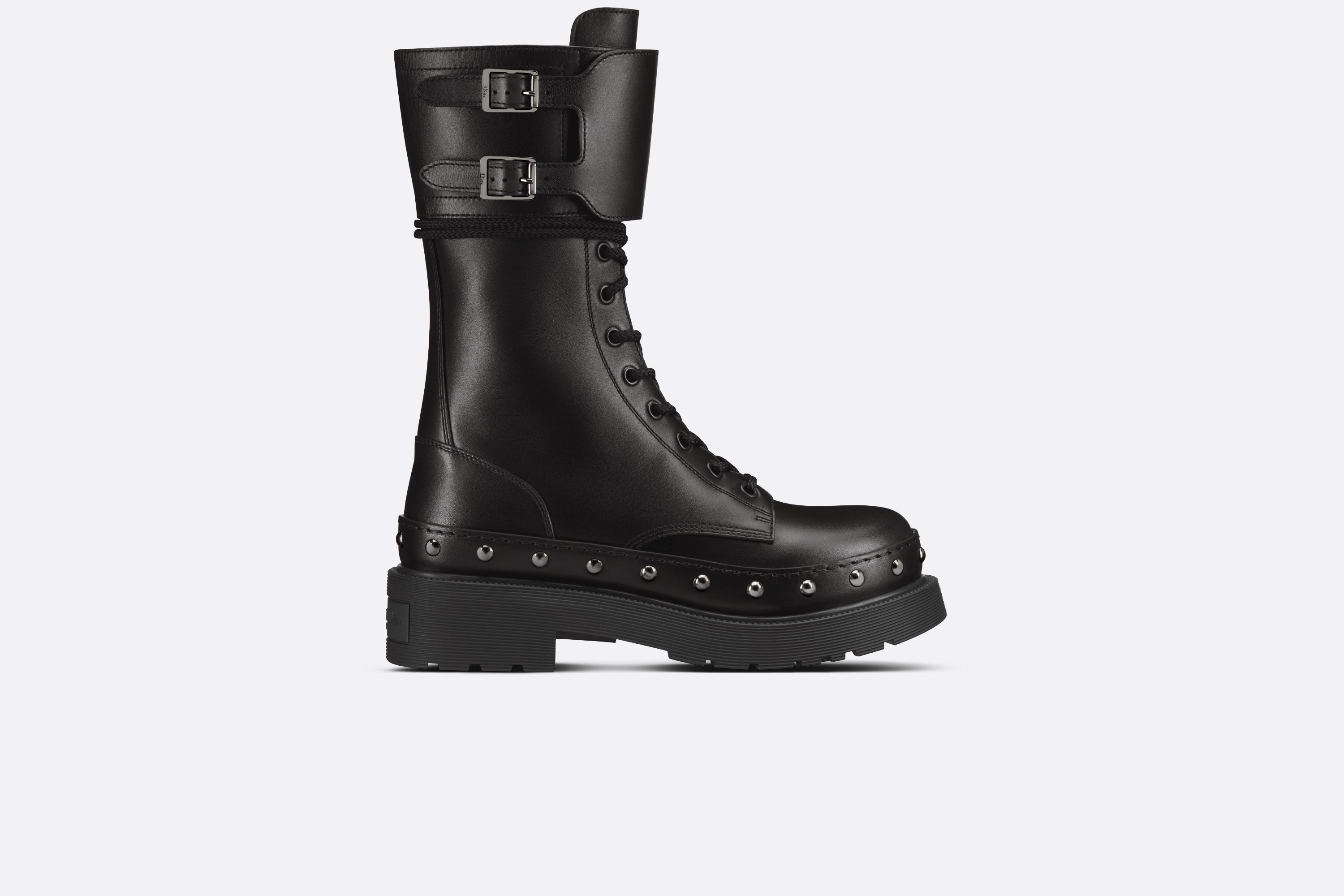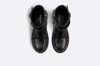 The Diorquake ankle boot offers a modern silhouette inspired by the eponymous clog. The black calfskin upper is embellished with silver-finish rivets and adjustable 'DIOR' buckles, while the black rubber sole reveals the 'Christian Dior PARIS' signature at the back. Echoing the spirit of the collection, the boot can be styled with high socks. - Adjustable 'DIOR' engraved buckles - Side zip closure - 'Christian Dior PARIS' signature at the back of the sole - Notched rubber sole with engraved star, Christian Dior's lucky symbol - Made in Italy Size & Fit - The upper is 25.5 cm / 10 inches high - The style fits true to size: we recommend ordering your normal shoe size - For those with wider feet, we recommend ordering a half-size larger than your normal size - For more information, please review the size guide