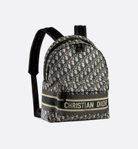 The DiorTravel backpack combines hallmark House elements with a modern and practical design. Crafted in blue Dior Oblique waterproof technical jacquard, it is embellished with a Christian Dior Paris signature on the front. The large zipped flap opens with ease to access all the essentials. The backpack can be worn over the shoulder or on the back thanks to its handle and straps. - Christian Dior Paris signature on the front - Adjustable shoulder straps - Front zip pocket - Dust bag included - Made in Italy Size & Fit - Dimensions: 34 x 42 x 15 cm / 13.5 x 16.5 x 6 inches (Length x Height x Width) - The bag’s large size can accommodate a 15-inch laptop, a pouch, a wallet, a phone, two card holders, sunglasses and lipstick - Weight: 500 g / 17.5 ounces
