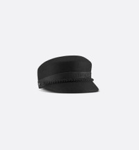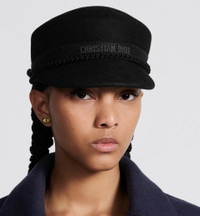 The Dior Travel cap revisits the classic sailor cap with a timeless and elegant design. Crafted in black wool felt, it is enhanced by a tonal band embroidered with the Christian Dior Paris signature. Completed by an embroidered rope and buttons, the cap will lend the finishing touch to modern outfits. - Tonal embroidered band with Christian Dior Paris signature - Embroidered rope and buttons - 100% wool felt - Made in Italy Size & Fit - The hat size corresponds to the head's circumference in cm / inches - Four sizes available: 56 cm / 22 inches, 57 cm / 22.5 inches, 58 cm / 23 inches, 59 cm / 23.5 inches
