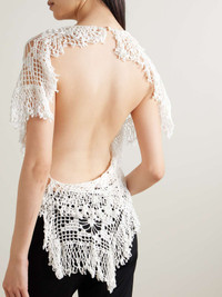 EDITORS'NOTES Diotima's designs are handcrafted by artisans honoring traditional Jamaican techniques. Crocheted from cotton, this 'Drift' top has a cutout bodice and halterneck and lightly skims your figure as it falls to a handkerchief hem. Underpin yours with a tonal bralette. Responsible Craftsmanship. This product promotes artisanal skill and brands that invest in communities and adhere to fair-trade principles. Find out more about our NET SUSTAIN criteria here. SIZE & FIT - 1 = UK 6/ US 0-2/ FR 34-36/ IT 38 - 2 = UK 8/ US 4-6/ FR 38-40/ IT 40 - 3 = UK 10/US 8/ FR 42/ IT 42 - 4 = UK 12-14/ US 10-12/ FR 44/ IT 44 - Fits true to size, take your normal size - Designed for a relaxed fit - Mid-weight, open knit - Model is 177cm/ 5'10" and is wearing the designer's size 2 - Bust: 81cm/ 32" - Waist: 65cm/ 25.5" - Hip: 92cm/ 36" DETAILS & CARE - White cotton - Button fastening at neck - 100% cotton