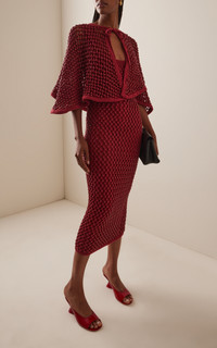 Boasting meticulous hand-detailing, ornate crochet, and organic fabrications, Rachel Scott’s line is both a rich collaboration and an homage to her home country, Jamaica. Made just for us, this capelet is made from a knit mesh dotted with crystals. Wear yours over the matching dress for a dramatic finish. PRODUCT DETAILS - Pre-Fall ‘25 - Tie fastening - Composition: 76% cotton, 24% nylon - Designer color: Anthurium Red - Dry clean - Imported