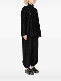 lace-trimmed high-neck shirt
