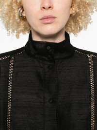lace-trimmed high-neck shirt Highlights - Black - High neck - Button fastening - Long sleeves - Lace trim Imported Composition Silk 100% SIZE & FIT Model measurements Height 5 ft 9 in(1.75 m) Bust/Chest 34.64 in(88 cm) Hips 36.61 in(93 cm) Waist 26.37 in(67 cm) Washing instructions Read Manufacturer Guidelines