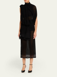 Diotima "Mayor" handdraped silk dress finished with pile embroidery that adds captivating texture. High neckline Sleeveless Open back Front slit Hem falls below the knee Aline silhouette Back button closure Silk/rayon/cellulose acetate Professional cleaning recommended Imported