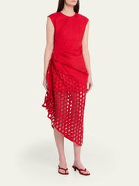 Notting Broderie Anglaise Asymmetric Draped Midi Dress