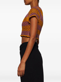 Rae crochet-detail top Highlights - Rose pink and mustard yellow - Open-knit design - Short sleeves - Round neckline - Cropped length - Contrasting stripe pattern Imported Composition Cotton 76%, Nylon 24% Washing instructions Read Manufacturer Guidelines