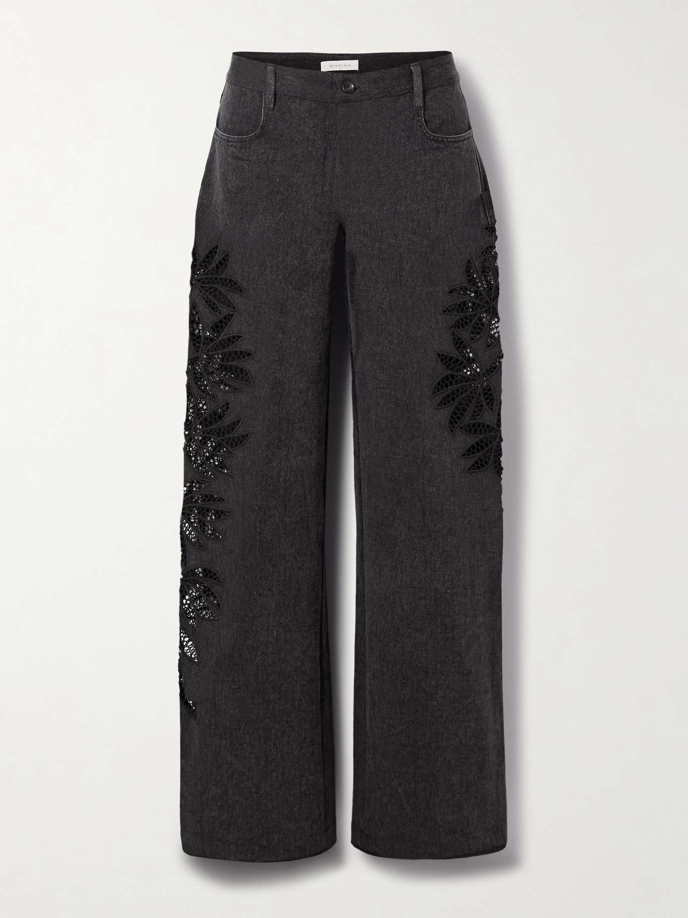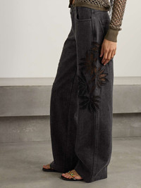 EDITORS'NOTES Each Diotima piece is a celebration of founder Rachel Scott's Jamaican heritage - the elaborate crochet trims detailing these 'Stulla' jeans are produced by the country's skilled craftspeople. They're cut from denim and have a mid-rise, straight-leg shape. SIZE & FIT - 1 = UK 6/ US 0-2/ FR 34-36/ IT 38 - 2 = UK 8/ US 4-6/ FR 38-40/ IT 40 - 3 = UK 10/US 8/ FR 42/ IT 42 - 4 = UK 12-14/ US 10-12/ FR 44/ IT 44 - Fits true to size, take your normal size - Mid-rise, cut for a straight-leg fit - Mid-weight, non-stretchy denim - Size 1 jeans have an inside leg of 33"/ 85cm - Designer sizing DETAILS & CARE - Black denim and crochet - Button and concealed zip fastening at front - 100% cotton; trim: 100% leather; pocket lining: 100% cotton - Machine wash or dry clean