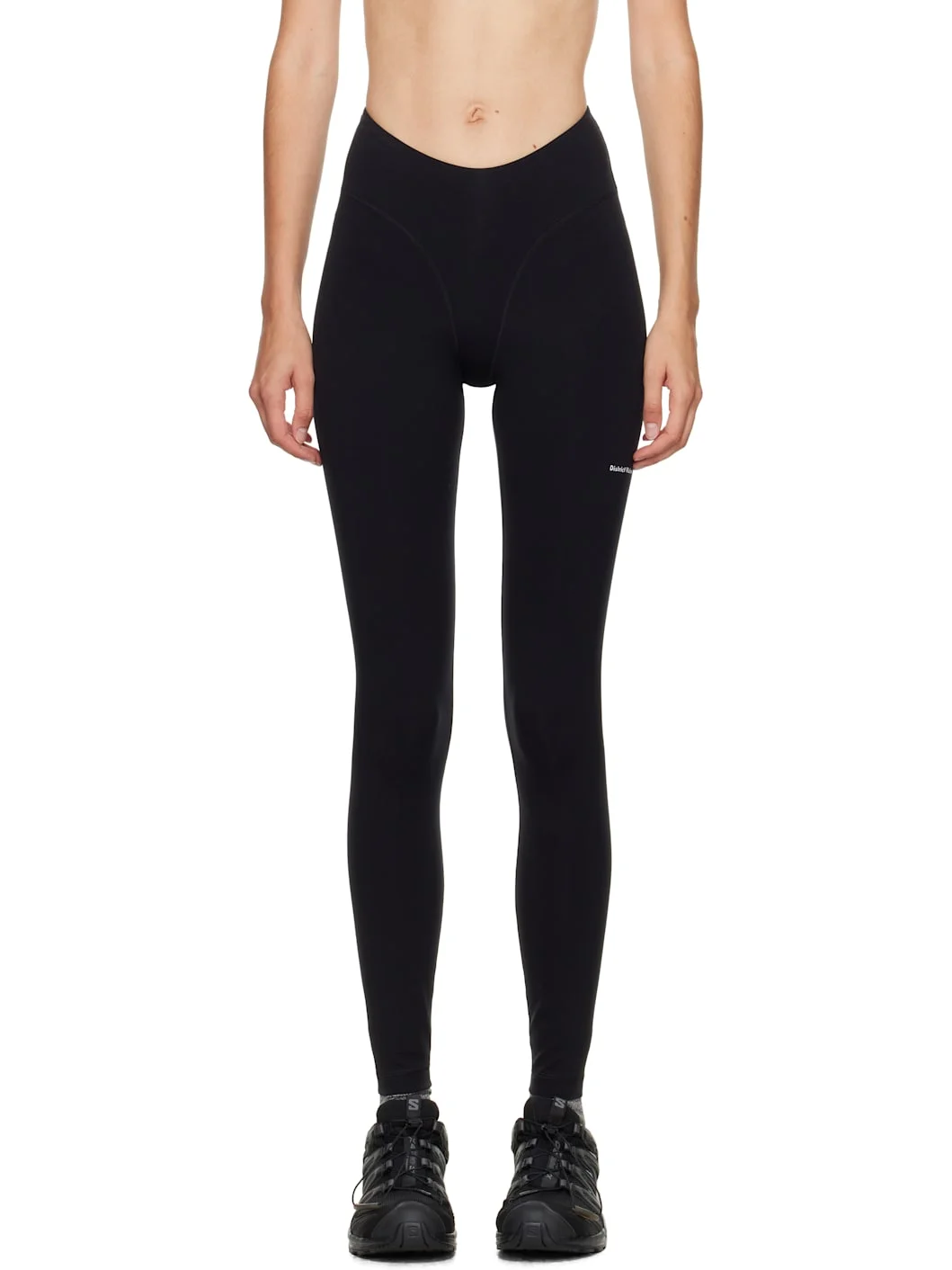 180 gsm stretch nylon jersey sport leggings. · High-rise · Elasticized waistband · Logo printed at front Supplier color: Black 66% polyamide, 34% elastane. Made in Lithuania 252920F531003