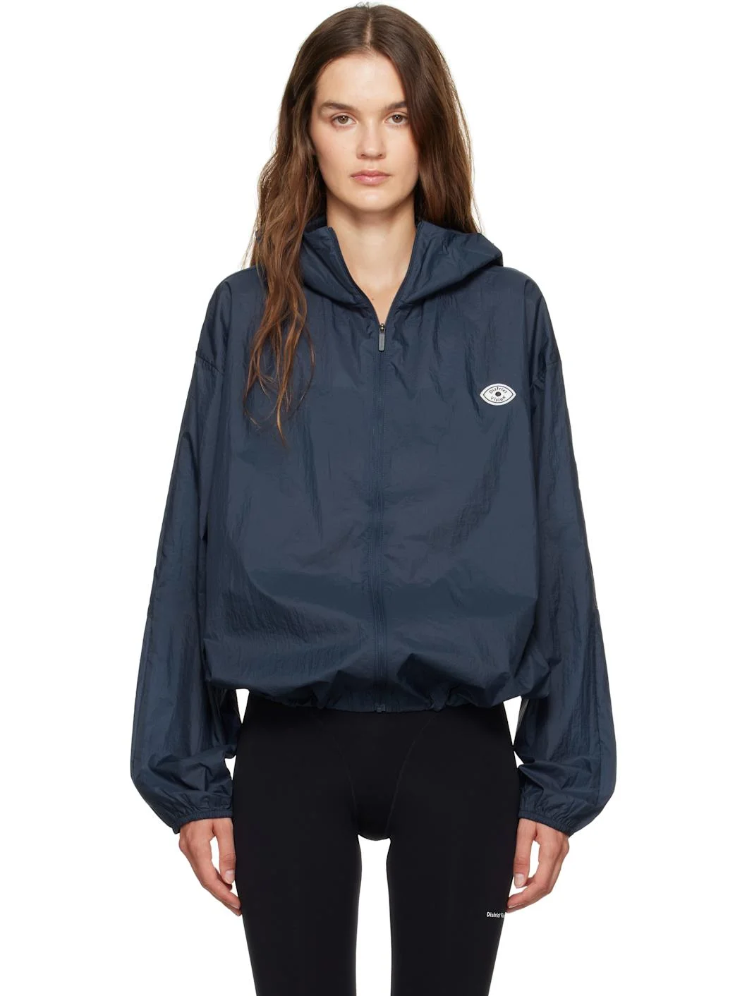 Lightweight 55 gsm nylon taffeta jacket. · Water-repellent non-PFC DWR-coating · Hood at stand collar · Zip closure · Felted logo patch at chest · Bungee-style drawstring at hem · Elasticized cuffs · Storm flap at back Supplier color: Midnight 100% polyamide. Made in Lithuania 252920F581008
