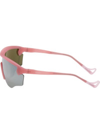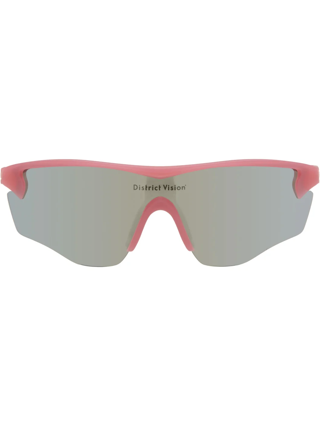 Shield-style semi-rimless semi-transparent acrylic-frame sunglasses. · Mirrored silver tone lens with D+ lens technology · 100% UVA/UVB protection · Integrated rubber nose pads · Logo printed at lens and temple · Core wires · Eyewear chain-compatible rubber temple tips · Includes microfiber pouch · Size: 140 125 Supplier color: Powder rose/D+ silver flash mirror Acrylic. Made in Japan 252920F005003