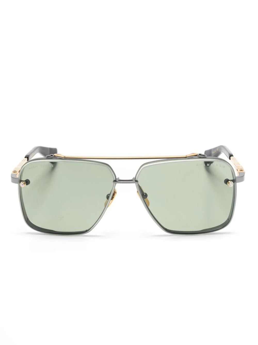 Mach-Six sunglasses Highlights - Gold-tone - Nose pads - Navigator frame - Curved tips - These glasses come with a protective case. Imported Composition Metal 100% SIZE & FIT Measurement Arm Length 5.11 in(13 cm) Bridge Width 0.47 in(1.2 cm) Lens Diameter 2.04 in(5.2 cm) Total Width 5.82 in(14.8 cm)