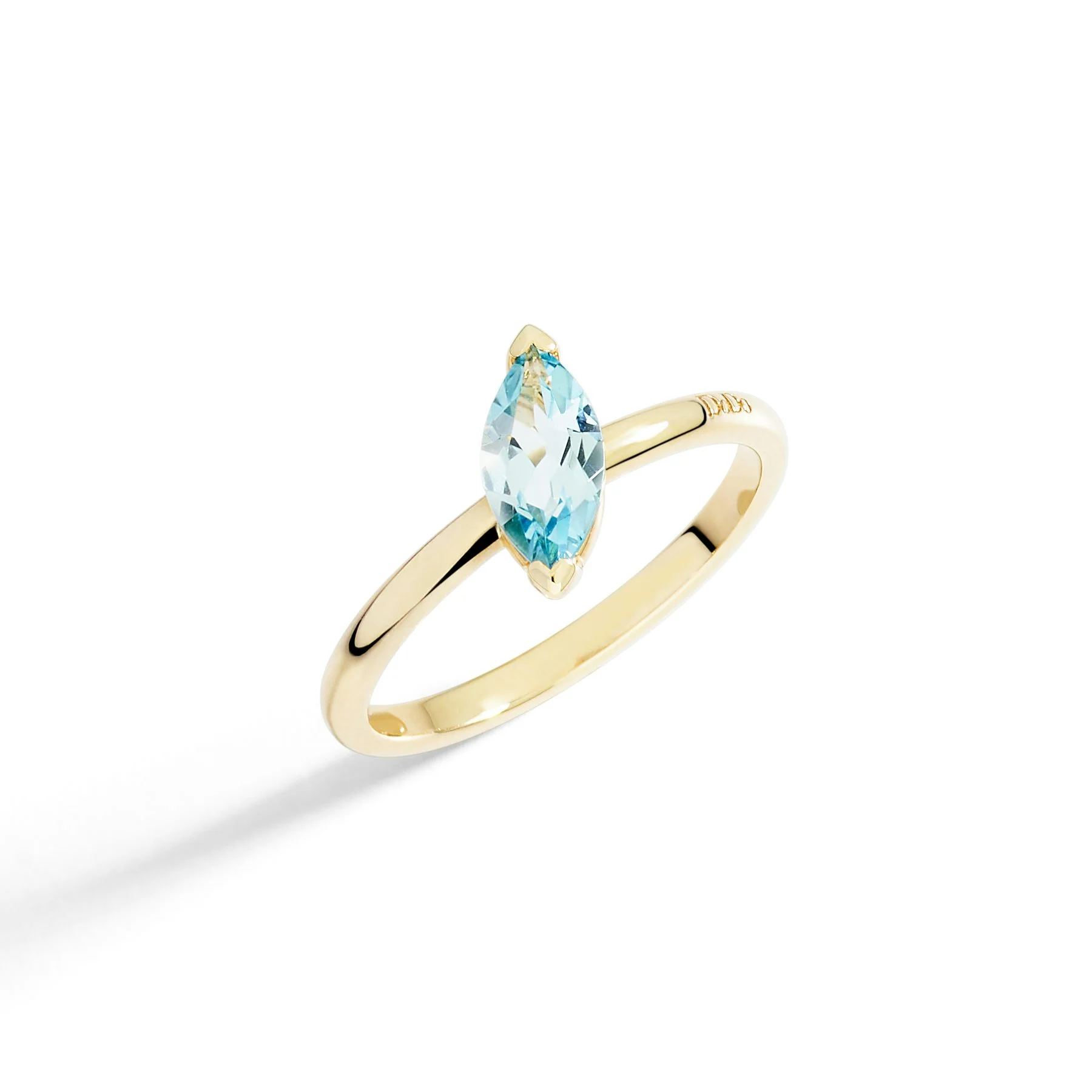 DAC5002-FCUTS-YY09G A glimmer of sky on your finger The marquise-cut sky topaz, framed in 9K yellow gold, radiates a soft and fresh light. Essential and refined, perfect worn alone or stacked for a layered look. Fancy cut ring in 9K yellow gold with sky topaz (ct 0.64). Marquise cut. Product Care Every Dodo jewel is made to be worn every day and on every occasion. This is why no extraordinary maintenance is needed, especially if it is delicately handled and cleaned. If you want to preserve the shine of Dodo jewelry, we recommend you to store it in a clean, dry place away from any heat sources.