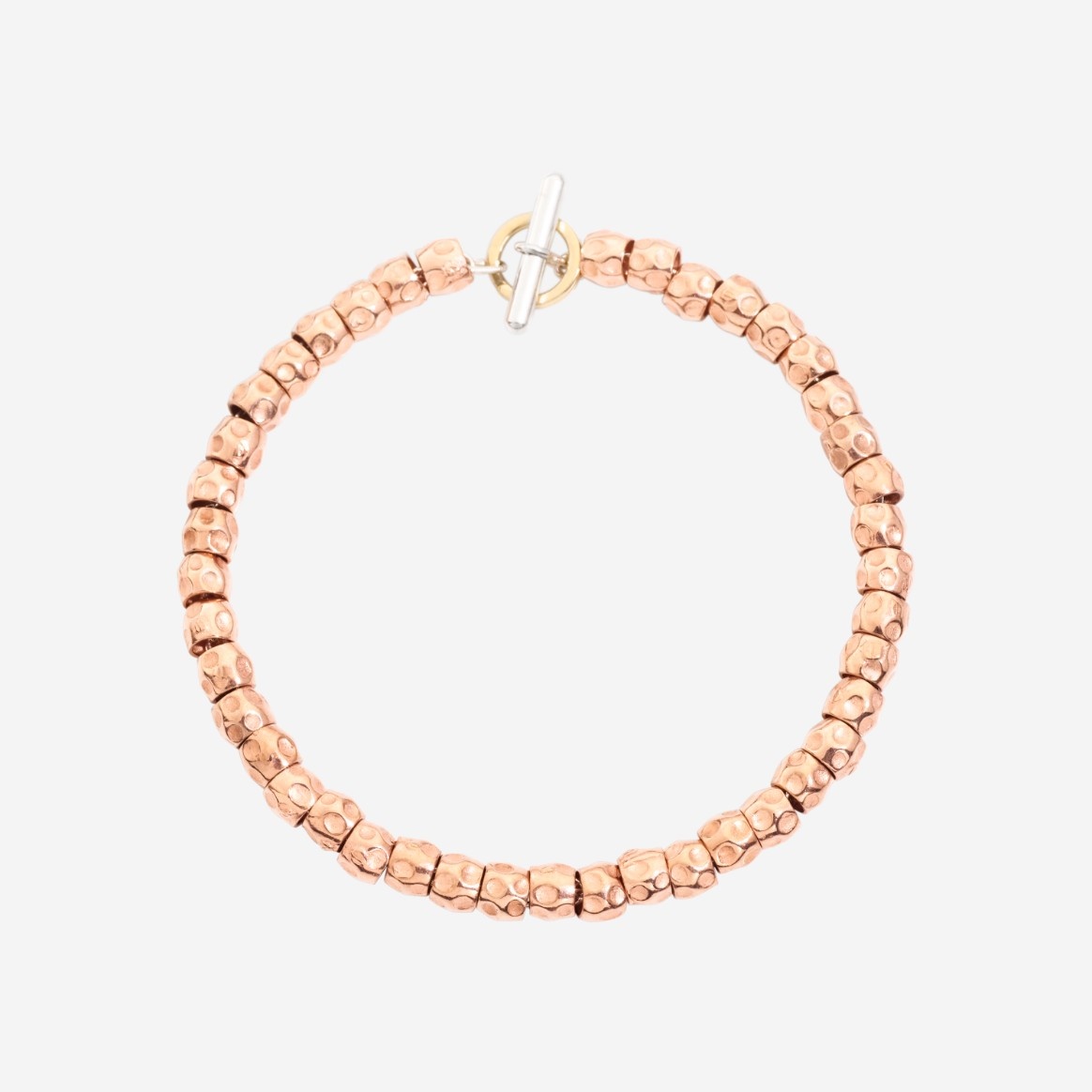 SKU: DBB9005_GRANE_G9R9A 9K ROSE GOLD, SILVER, 18K YELLOW GOLD. Granelli bracelet in 9K rose gold, chain in sterling silver with brise ring closure in 18K yellow gold. Needle in sterling silver included.