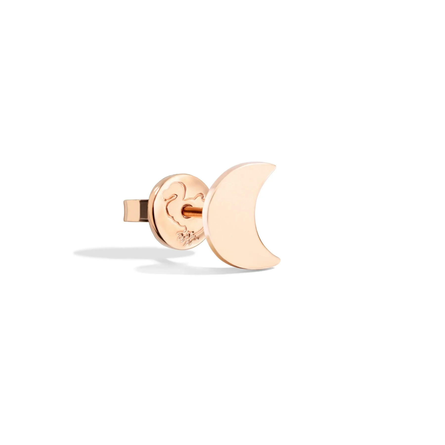 DHB6000-MOONS-0009R From day to night, from dawn to dusk: a play of opposites glitters in the sky… and not only there! With the jewels of the Sun and Moon collections, beauty emerges amidst gold beams and precious gems. Moon stud earring in 9K rose gold - small model. Product Care Every Dodo jewel is made to be worn every day and on every occasion. This is why no extraordinary maintenance is needed, especially if it is delicately handled and cleaned. If you want to preserve the shine of Dodo jewelry, we recommend you to store it in a clean, dry place away from any heat sources.
