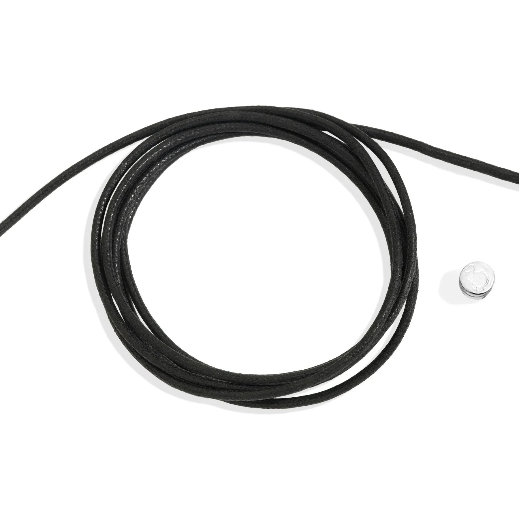 DDA6000-CORDL-0NEAG Colourful, gender-neutral, and minimalist: create your own unique bracelets and necklaces with the iconic collection of DoDo cords! Thick black cotton cord and seal in sterling silver. Product Care Every Dodo jewel is made to be worn every day and on every occasion. This is why no extraordinary maintenance is needed, especially if it is delicately handled and cleaned. If you want to preserve the shine of Dodo jewelry, we recommend you to store it in a clean, dry place away from any heat sources.