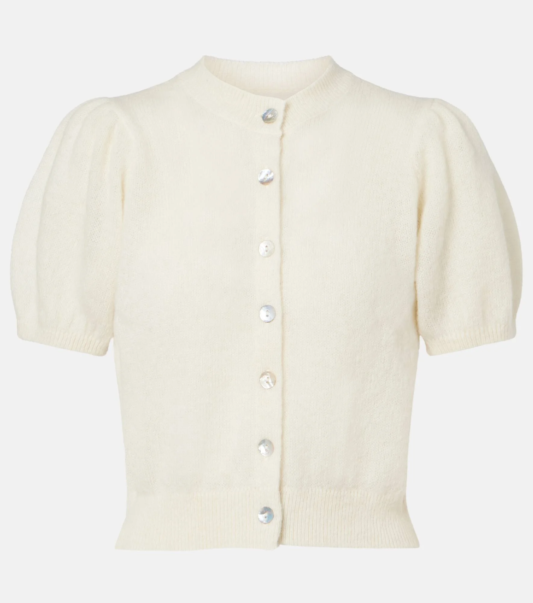 Beloved for its soft, nostalgic aesthetic, Doen celebrates womanhood in all its forms. The Anisa cardigan is knitted from a fuzzy alpaca and wool blend and features subtle puff sleeves. Product Details - Material: 50% alpaca wool, 28% polyamide, 22% wool - Care instructions: dry clean - Made in Turkey - Color: white - Designer color name: Ivory - Cuff: ribbed - Closure: buttoned front - Hem: ribbed - Item number: P01137097 Size & Fit - True to size - Slightly stretchy fabric - Falls to the hip - The model seen in the picture is 178cm-5'10" and wearing a size XS