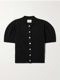 DOEN's 'Anisa' cardigan has a sweet, retro-inspired feel. Knitted with incredibly soft and lightweight alpaca and merino wool, it has puffed short sleeves and a slightly cropped length. Wear yours with high-rise jeans or a skirt, leaving the last few mother-of-pearl buttons undone. Size & Fit - Fits true to size, take your normal size - Designed for a slightly loose fit - Mid-weight knit - Model is 175cm/ 5'9" and is wearing a size Small Model measurements: - Bust: 81cm/ 32" - Waist: 65cm/ 26" - Hip: 90cm/ 35" Details & Care - Black polyamide, alpaca and merino wool-blend - Button fastenings through front - 35% polyamide, 33% alpaca, 32% merino wool - Dry clean - Mother-of-pearl: India/Indonesia