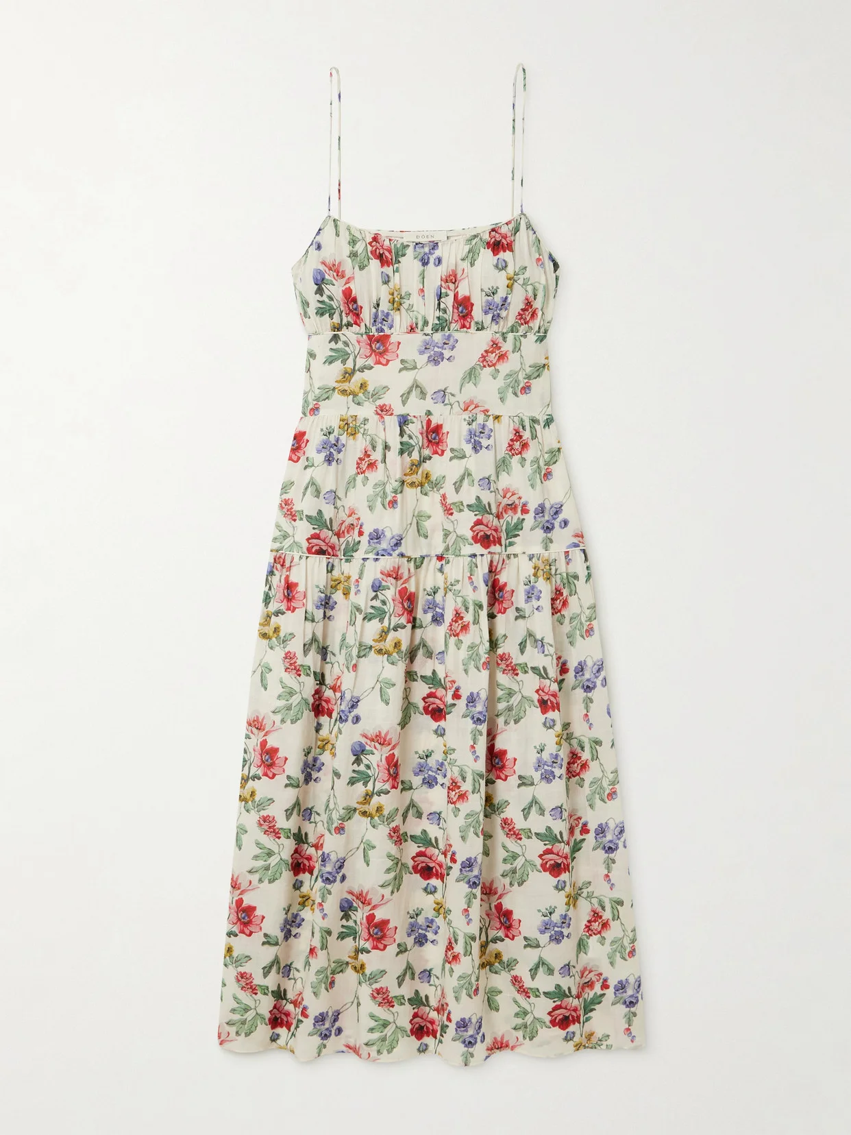 Feminine, romantic elements are part of what make DOEN's collections so covetable. This 'Benoit' midi dress is cut from tiers of ramie decorated with a floral print resembling Liberty patterns. It's gathered along the bust and has pin-thin straps and a floaty skirt.