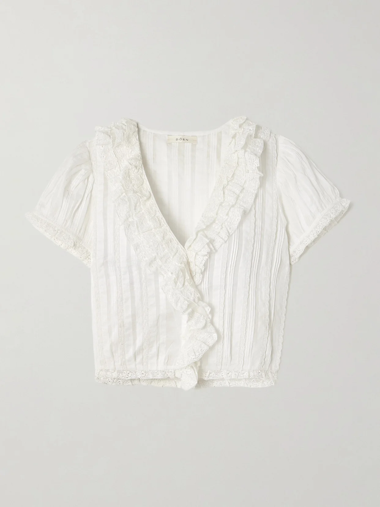 DOEN's 'Bernadette' top features a deep V-neckline, with short sleeves and romantic lace trims. Made from organic cotton, it has a crisp, lightweight feel that'll keep you fresh and cool as temperatures climb. Dress it up with a satin skirt or down with denim shorts.