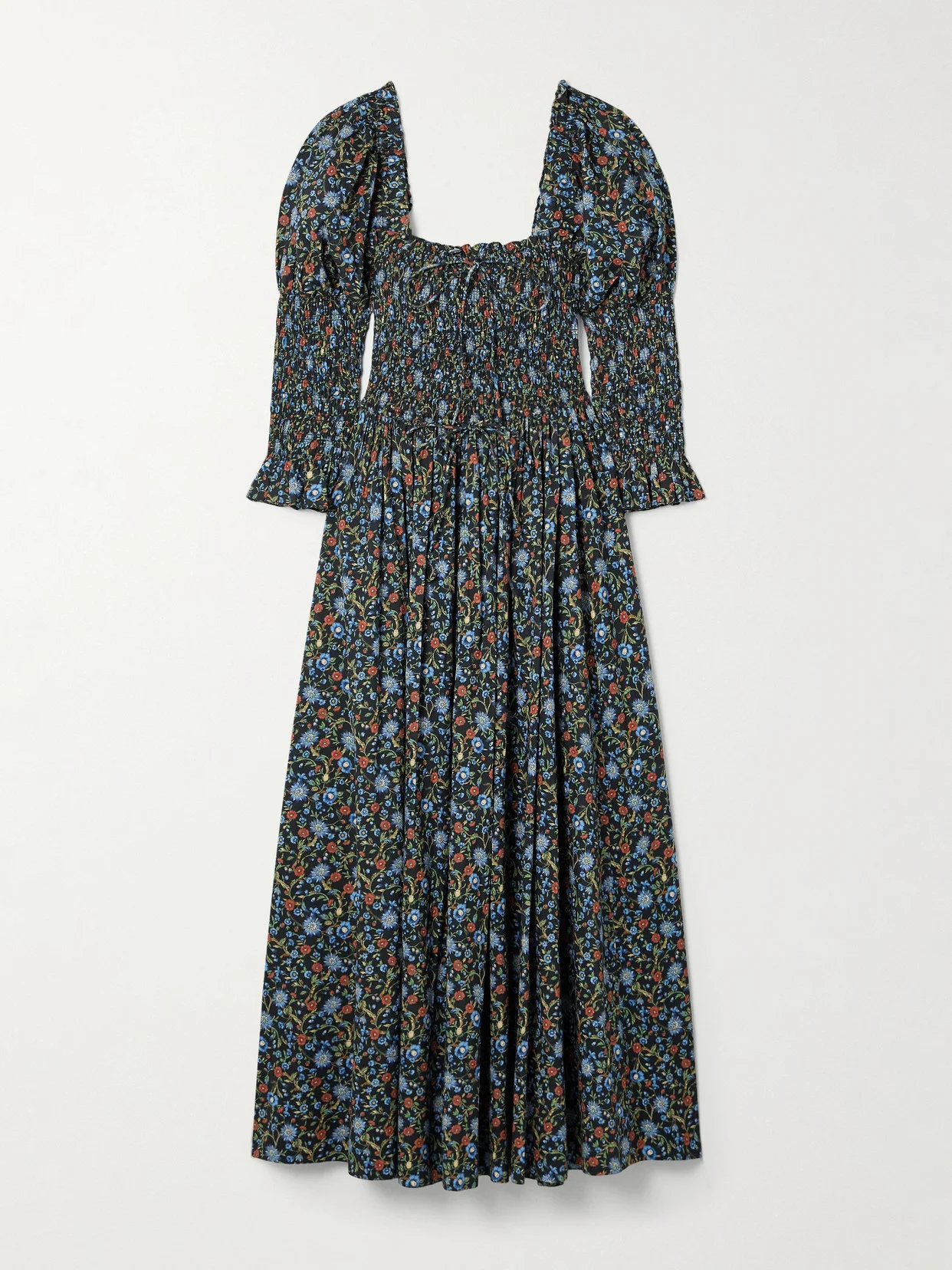 Bijou Shirred Floral-print Organic Cotton-voile Midi Dress