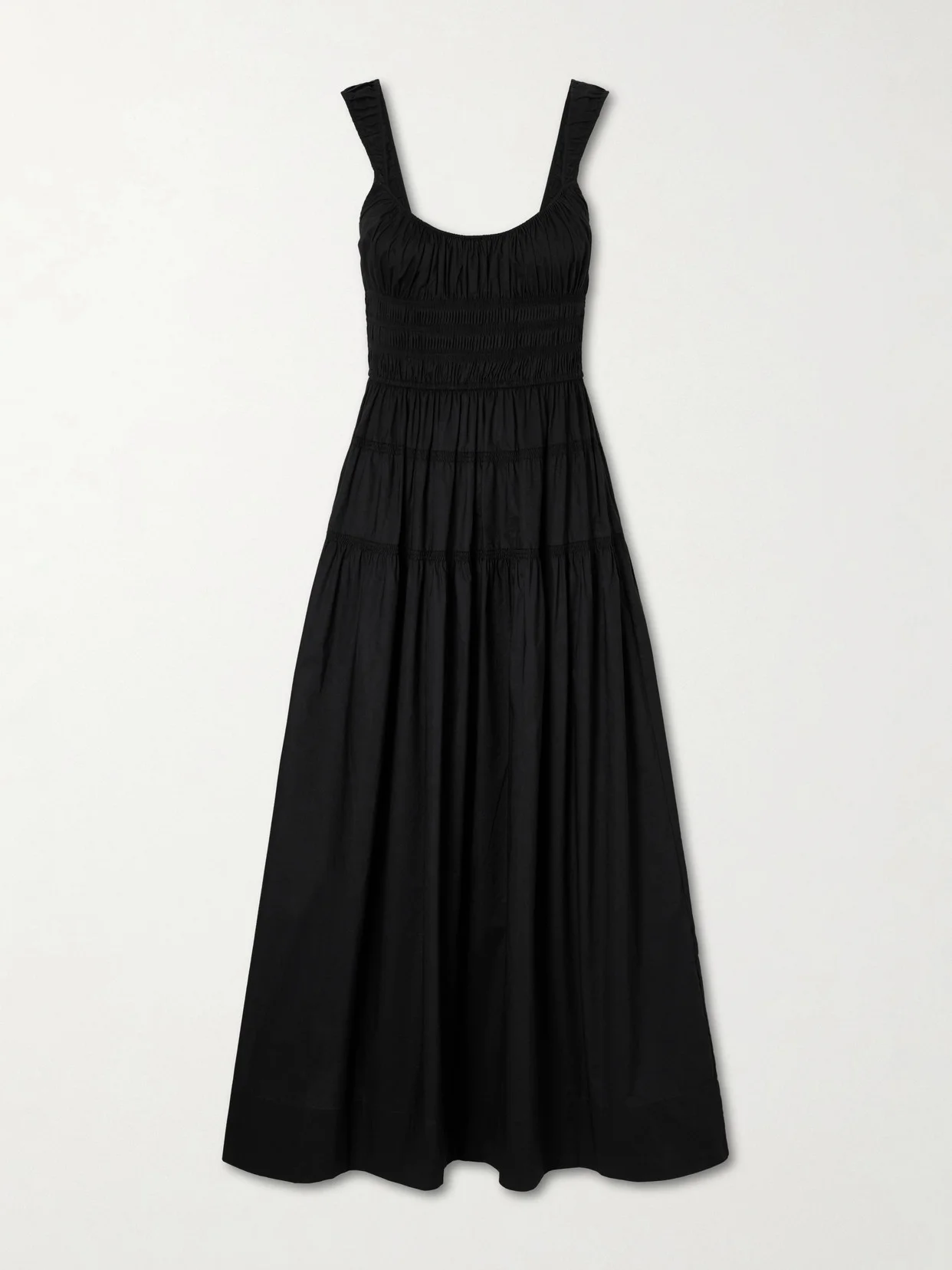 Clover Smocked Organic Cotton-poplin Midi Dress