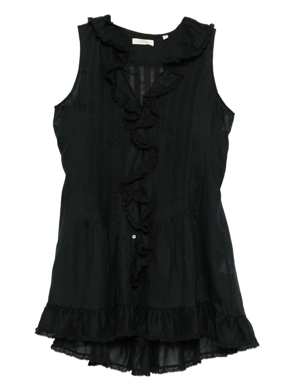 Henrietta mini dress Highlights - Black - Front button fastening - Ruffled detailing Imported Composition Ramie 100% SIZE & FIT Model measurements Height 5 ft 9 in(1.75 m) Bust/Chest 32.67 in(83 cm) Hips 36.22 in(92 cm) Waist 24.8 in(63 cm) Washing instructions Dry Clean Only