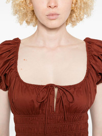 Quinn midi dress Highlights - Chestnut brown - Keyhole neck - Smocked waist Imported Composition Organic Cotton 100% SIZE & FIT Model measurements Height 5 ft 9 in(1.75 m) Bust/Chest 34.64 in(88 cm) Hips 36.61 in(93 cm) Waist 26.37 in(67 cm) Washing instructions Hand Wash