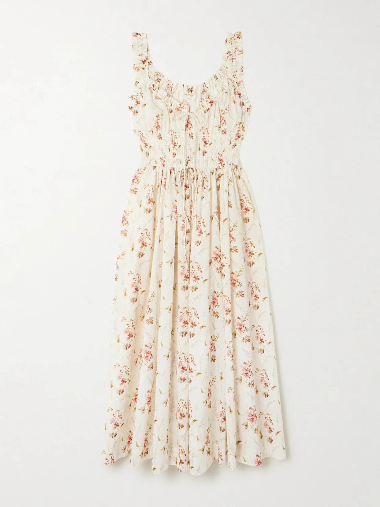 Emmaretta Tie-detailed Shirred Floral-print Organic Cotton Midi Dress