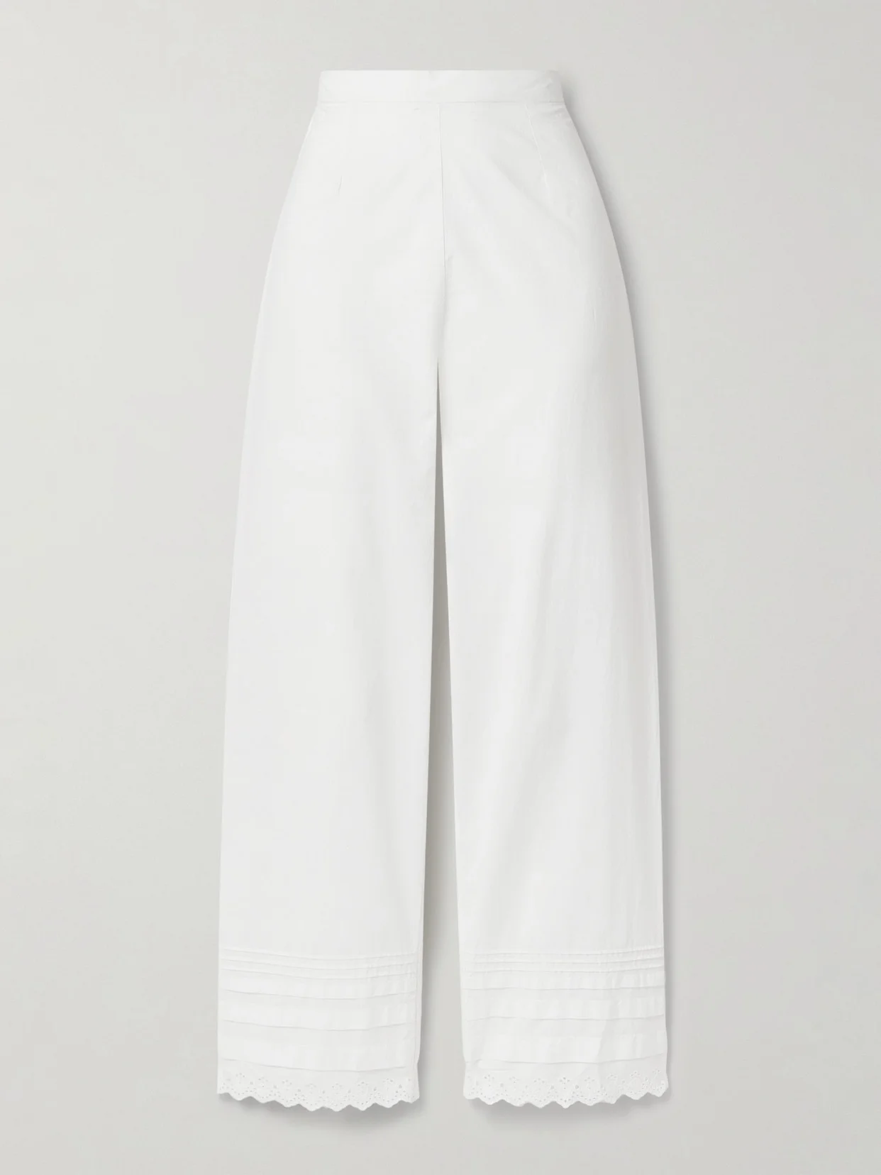 Francisca Broderie Anglaise-trimmed Pintucked Organic Cotton-poplin Straight-leg Pants