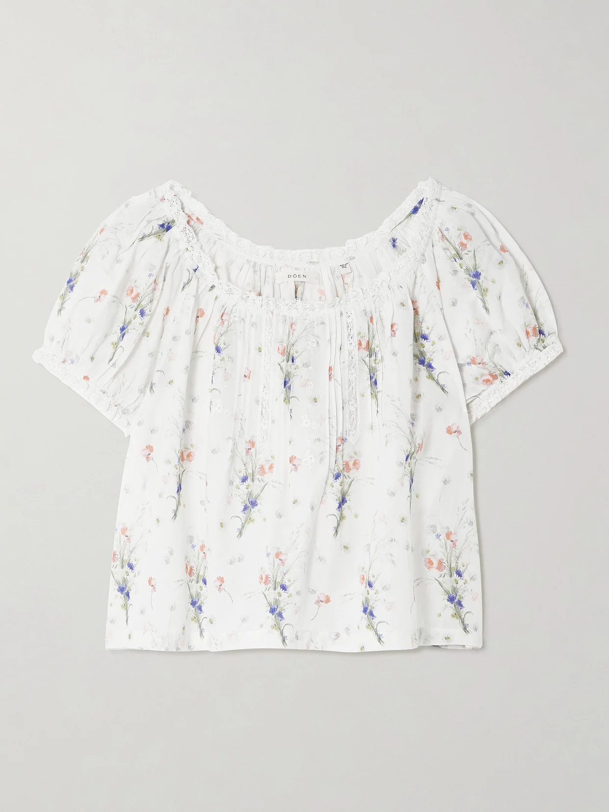 DOEN's 'Frederica' blouse is pure prettiness. It's made from organic cotton-voile that's pintucked along the front and trimmed with lace on the prairie-like puffed sleeves. Because it's so light and billowy, it's perfect on vacation. Lower-Impact Materials. This product is made using at least 50% lower-impact materials or ingredients. Find out more about our NET SUSTAIN criteria here.