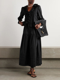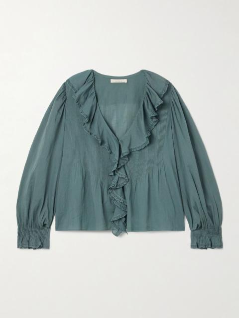 Hardy lace-trimmed ruffled pintucked organic cotton-voile blouse Black