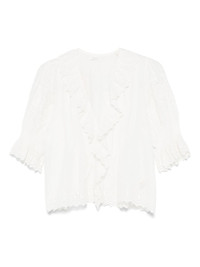 Henri blouse Highlights - White - Front button fastening - V-neck - Three-quarter length sleeves - Broderie anglaise Imported Composition Organic Cotton 100% SIZE & FIT Model measurements Height 5 ft 11 in(1.8 m) Bust/Chest 32.67 in(83 cm) Hips 36.22 in(92 cm) Waist 24.4 in(62 cm) FittingInformation Designed to be unstructured, offering a loose fit throughout Made from a lightweight non-stretch fabric