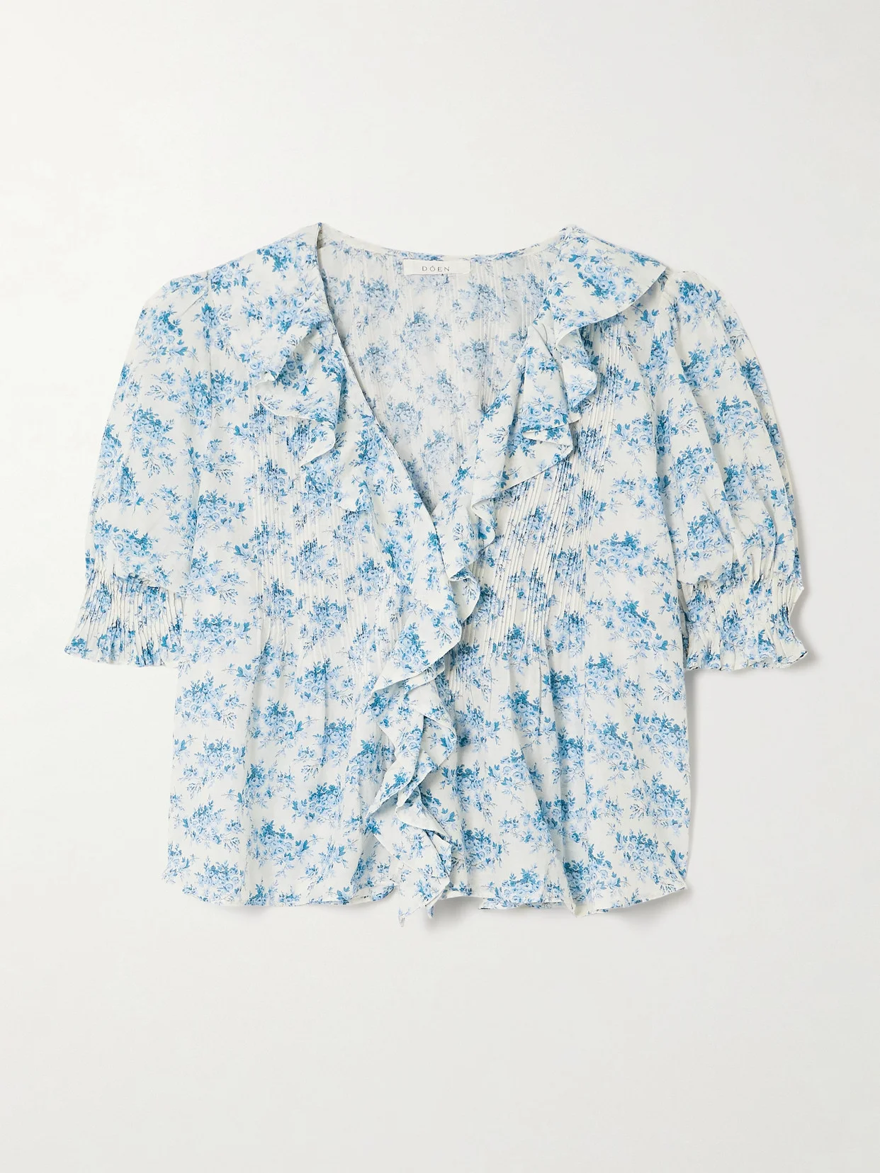 Henri Ruffled Pintucked Floral-print Organic Cotton-voile Top