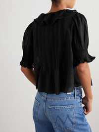 Henri ruffled pintucked organic cotton-voile top Black