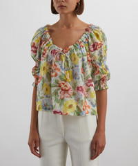 DETAILS Cotton voile top Loose silhouette Double-puff sleeves Scoop neckline with functional ties SIZE & FIT Model is 174cm/5’9"; Chest: 81cm; Waist: 60cm; Hip: 90cm and wears S COMPOSITION & CARE 100% Cotton Hand wash cold. Do not bleach. Lay flat to dry. Low iron