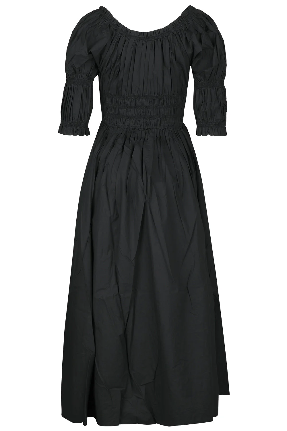 DETAILS AND INSIGHT Doen ischia midi dress in black. 52% Organic Cotton, 48% Viscose Hand Cold Wash Made In India Style 270-2333-BLACK