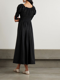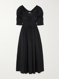 Ischia shirred organic cotton-voile midi dress Black