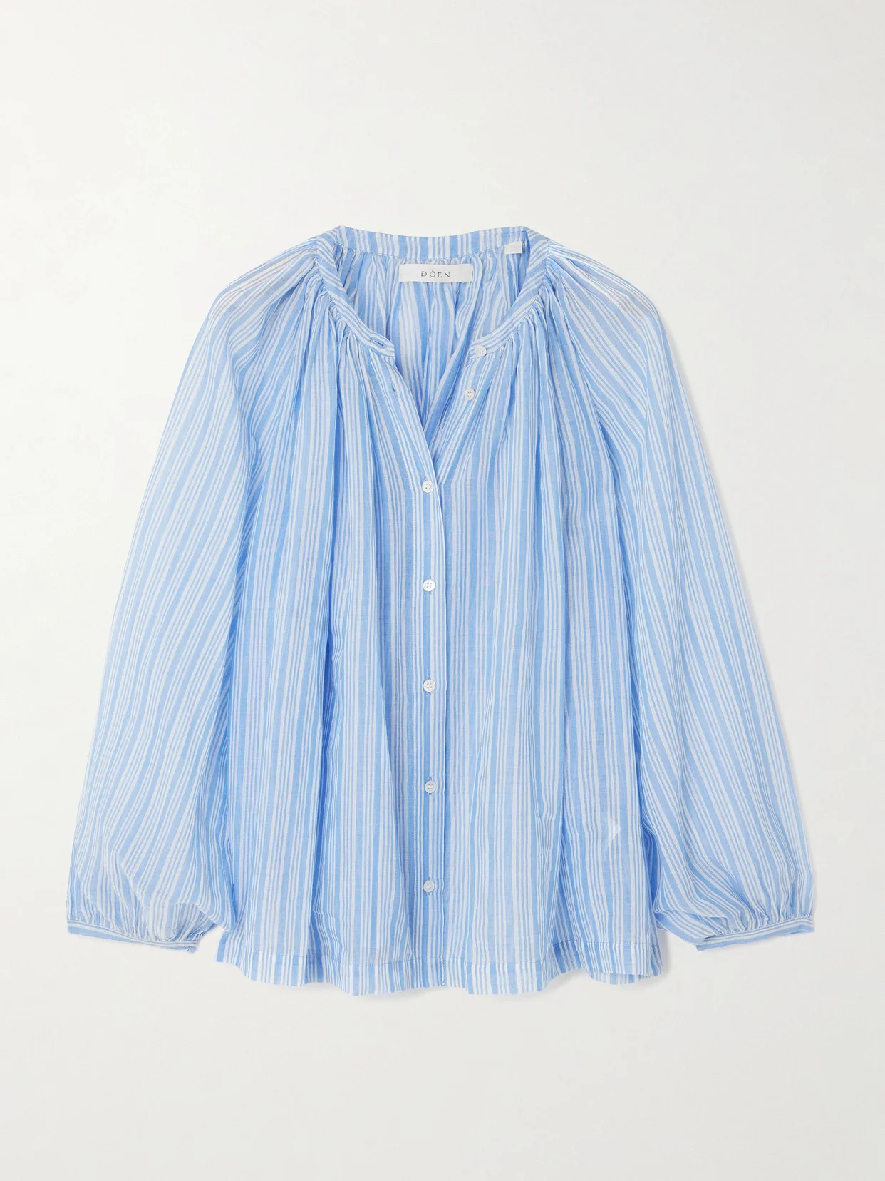 Rooted in a nostalgic, California-inspired sensibility, DOEN brings a refined softness to this 'Jonie' blouse. It's cut from striped organic cotton-voile with voluminous sleeves for an effortless silhouette. Wear it with white denim to channel the west coast spirit.