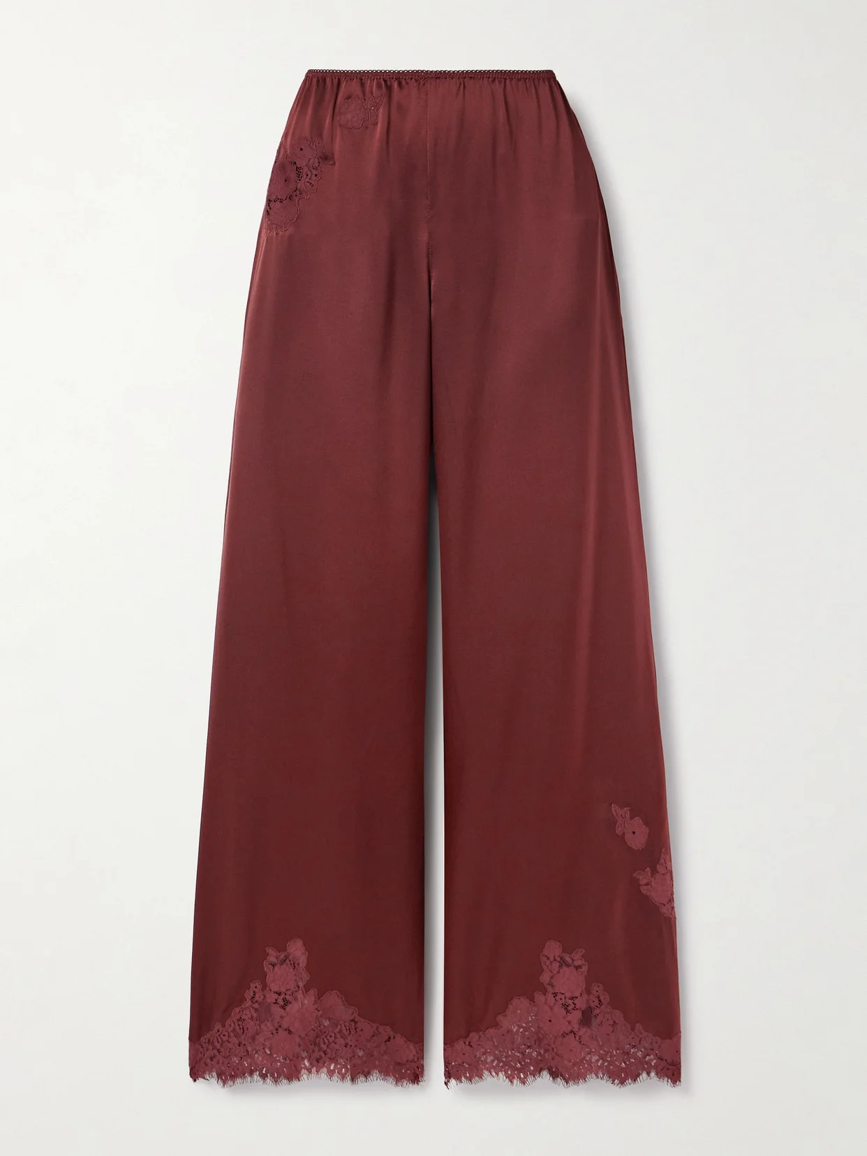 Lavon Lace-trimmed Silk-satin Wide-leg Pants