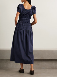 Leanne Shirred Gingham Organic Cotton-voile Midi Dress