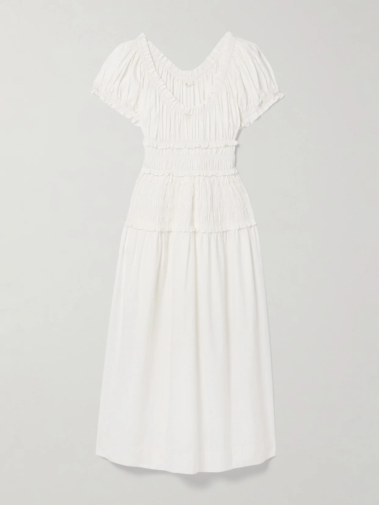 Leanne Shirred Organic Cotton-voile Midi Dress